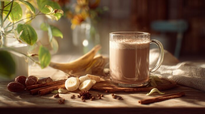 Este licuado se distingue por reunir sabores conocidos y profundamente reconfortantes: café, canela, nuez moscada y un toque de miel o dátiles para endulzar sin recurrir a azúcar refinada. La combinación ofrece un perfil aromático muy navideño, pero con un aporte nutricional más equilibrado. Ideal para desayunar, acompañar una tarde fría o servir como alternativa ligera entre reuniones familiares.