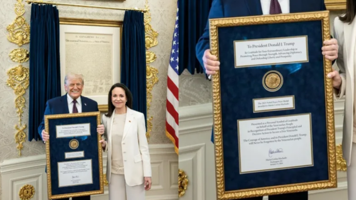 Posteriormente, Machado explicó que el gesto fue realizado “como reconocimiento por su compromiso único con nuestra libertad”, en referencia al papel que, según ella, Trump ha tenido respecto a la situación política en Venezuela.