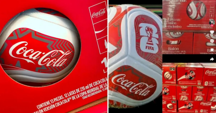 El paquete promocional incluye cuatro latas de Coca-Cola y un mini balón conmemorativo del Mundial 2026, presentado dentro de un empaque especial pensado como artículo de colección.